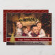 Un moderno diseño de tarjetas de Navidades de fotografía con una foto familiar llenando la cara de la tarjeta. Arte moderno divertido decoración de árbol de Navidad con banda de texto rojo oscuro para tus palabras.