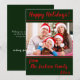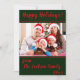 Tarjeta de Navidad plana con foto familiar Felices Fiestas. Tarjeta de Navidad con foto en verde y texto rojo en la parte frontal. Personalice las palabras a su estilo. La tarjeta cuenta con caligrafía en la parte frontal y tipo serif plano en la parte posterior. Envíe un saludo navideño a sus seres queridos con una foto familiar para que familiares y amigos puedan ver cómo están usted y sus hijos este año. Mejore el mensaje interno para reflejar su propio estilo.