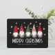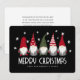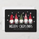 Esta divertida y linda tarjeta de Navidad presenta cinco gnominos en rojo, blanco, gris y verde. La tipografía retro dice "Feliz Navidad", y los copos de nieve dibujados a mano añaden un toque caprichoso. ¡Los colores del fondo y el texto se pueden personalizar a cualquier color que desee! Las plantillas de texto están incluidas en la parte posterior para una fácil personalización.