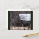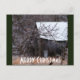 Una diversión y una manera casual de desear a alguien las Felices Navidad, características un granero rústico detrás de una rama de árbol helada