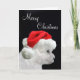 Perrito de Bichon Frise en una tarjeta de Navidad de la foto de la opinión del perfil del gorra de Santa. El texto se puede cambiar o quitar con el botón del PERSONALIZAR.