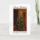 Esta tarjeta de Navidad está para una hija y su prometido con una foto de un árbol de navidad adornado con los ornamentos y las luces, enmarcados en rojo y blanco con dos copos de nieve grandes en el marco blanco y las palabras "Felices Navidad" en el top y la "hija y el prometido" en la parte inferior.