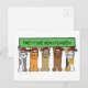 Gatos del dibujo animado que llevan los gorras de Santa que soportan una muestra verde grande que dice "Prettige Kerstdagen".