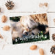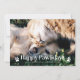 Tema del gato y el perro: tarjeta de fotos de Navidad con una foto de tu gato y/o perro con un texto superpuesto que dice "alegres pawlidays" con huellas de pata. Hay un ilustracion de lindos gatos y perros con luces Navidades en la parte trasera de la tarjeta.
