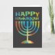 Celebra Hanukkah con esta colorida tarjeta de felicitación de feriados que dice "Feliz Hanukkah" sobre una menorah.