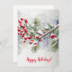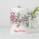 Tarjeta de felicitación de vacaciones con una rama con bayas rojas. Se puede personalizar, agregar el texto o nombre y la fecha en la parte posterior de la tarjeta. El texto de la parte delantera también podría cambiarse. Reemplace Felices Fiestas (Happy Holidays) por otro saludo.