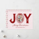 Experimenta una temporada navideña roja y rosa con nuestra tarjeta de Navidad única de doodle. Esta tarjeta única presenta la palabra festiva 'alegría', con la foto de tu familia querida sustituyendo la 'O'. Enmarcada en un marco de imagen esbozado, extiende tu amor y los saludos de la temporada mientras estampas la tarjeta con 'Feliz Navidad, y tu nombre'. Ofreciendo nostalgia y placer, es el recuerdo perfecto de Navidad para tus seres queridos.