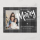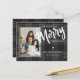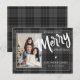 Tarjeta Postal de Feliz Navidad con Plaid Negro Tartán. Envía estas Tarjetas Postales de Navidad Personalizadas con Foto a amigos y familiares esta temporada navideña. El diseño tiene FELIZ escrito en negrita con fuente de pincel.
