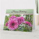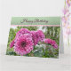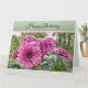 "Feliz cumpleaños" y el hermoso crisantemo rosa floreciente en la parte delantera de esta tarjeta ¡seguro que traerá una sonrisa a alguien que celebra su día especial! En su interior encontrará deseos de felicidad y amor.