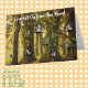 Mi obra de arte digital original aparece en esta linda tarjeta de mudanza, que consiste en mi fotografía original de un bosque con casitas para pájaros, procesada con un efecto de fantasía de acuarela para una apariencia ilustrada y caprichosa. La parte frontal de la tarjeta dice "¡Felicidades por tu nueva casa!" y la parte interior de la tarjeta dice "Me alegra que hayas encontrado el lugar adecuado". Una excelente tarjeta para cualquier amante de la naturaleza y las aves, o alguien que aprecia el humor.