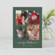 Esta sencilla y moderna tarjeta de Navidad incluye cuatro fotos en una cuadrícula de fotos superpuestas única con "feliz navidad" en elegante tipografía de letra manuscrita de moda, y el nombre de su familia en una tipografía sans serif. Disponible en varios colores.