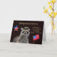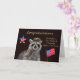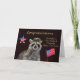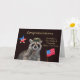 Felicita a tu nieto por completar el entrenamiento básico con una adorable sonrisa de mapache, llevando un gorra militar al lado de una bandera estadounidense y una linda estrella. El fondo es una bonito borgoña. Háganles saber lo orgullosos que estamos de ellos y lo mucho que se les aprecia.