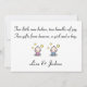 Felicitar a la nueva familia de gemelos con esta tarjeta especial y linda de felicitaciones, diseñada con amor, tarjeta de felicitaciones de los gemelos recién nacidos diciendo: "Dos pequeños recienes nacidos, dos grupos de alegría. Dos regalos del cielo, un chica y un niño", personaliza con el nombre de los gemelos, una tarjeta de saludo linda para el nacimiento de gemelos, saludos a la nueva familia de gemelos, una niña gemela y un bebé, son gemelos