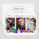 Este anuncio de graduación de 3 fotos colorido pone inteligentemente "Grad" en "Felicitaciones!"