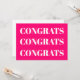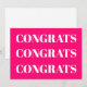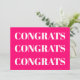 Felicidades, felicitaciones, tarjeta de notas moderna blanca de fucsia de color rosa caliente. Diseño elegante y moderno.