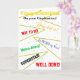 Felicidades por tu tarjeta de felicitación divertida para la recién graduada. Con puntos y líneas coloridas y la redacción, lo hiciste, Camino a seguir, tan orgulloso de ti, Woo-hoo, Superstar, Bien hecho en oro, naranja, rojo, azul, verde y negro. En el lado izquierdo de la tarjeta hay un fondo dorado con la Buena Suerte escrito en un fresco color rojo polvo de oro. Deja el texto tal como está o lo personaliza. Diseño original de TamiraZDesigns.