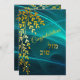 Estas tarjetas genéricas de felicitaciones con las palabras en inglés y hebreo, Mazel Tov, son una adición de bienvenida a su papel personal para todas las ocasiones. Puedes personalizar las palabras "Felicitaciones" para decir "Feliz Cumpleaños", "Feliz Aniversario", "Buena Suerte" o lo que quieras. La tarjeta presenta una rama de hojas en tonos dorados sobre un fondo verde azulado. Siéntase libre de personalizar de la tarjeta, reorganizar los elementos o aplicar el diseño a otros productos de su elección.
