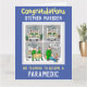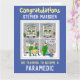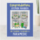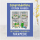 Para un paramédico que ha completado su formación médica. El gracioso ilustracion Personalizado muestra a los paramédicos viajando en ambulancia a un accidente. Como la palabra "ambulancia" en la parte delantera de su vehículo, ¡cada palabra en su leyenda hablada también es hacia atrás! Tarjeta de felicitación para un paramédico recién cualificado. Tarjeta grande.