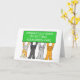 Cuatro gatos personalizados sostienen un cartel de color verde limón que dice 'Felicidades por conseguir tu tarjeta verde'.