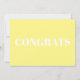 Felicidades, felicitaciones, tarjeta de notas moderna de color amarillo pálido claro. Diseño elegante y moderno.