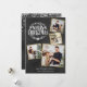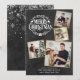 Un diseño de vacaciones boho de 4 fotos para que lo personalices con tus fotos favoritas enmarcadas en dorado, mensaje, nombres y año en un fondo de pizarra. El reverso presenta copos de nieve que caen sobre un fondo de pizarra coincidente. Diseñado por Thisisnotme©