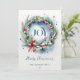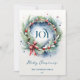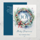 Feliciz Navidad clásico wreath de pino acuarela azul marino pinos nevados y bayas de invierno