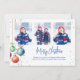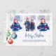 Este diseño presenta una tarjeta de Navidad con un collage de fotos, una elegante tarjeta de foto en acuarela roja, tipografía script, caligrafía, minimalista simple, tarjetas de Navidad minimalistas.