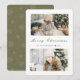 Envía un saludo de Navidad con estilo. Esta elegante y moderna tarjeta de vacaciones ofrece dos diseños de fotos con un diseño blanco y verde musgo que incluye "Feliciz Navidad" en elegante y moderna tipografía caligráfica manuscrita de moda, y el nombre de la familia y el año en una fuente clásica serif.