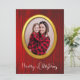 Marco dorado divertido y elegante para tu foto con fondo de madera rústica y texto de Feliz Navidad con letra elegante.