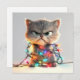 Celebra las festividades con este divertido gato enredado en luces y lleno de actitud. ¡Una tarjeta imprescindible para los amantes de los gatos que disfrutan de una buena risa!