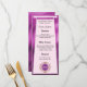 Un menú elegante con un patrón rosa y Relieve metalizado y tu número de cumpleaños único en purpurina y oro.