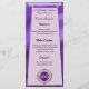 Un menú elegante con un patrón de Relieve metalizado y púrpura y su número de cumpleaños único en purpurina y oro.