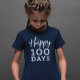 Celebra 100 días de clases con esta camisa inspirada en el timbre que muestra "feliz 100 días" en la parte delantera y marcas de conteo en la parte trasera
