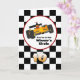 "Estás en el Círculo del Ganador", tarjeta de cumpleaños para ese pequeño y especial tirón con un coche deportivo amarillo en un círculo blanco de ganadores delineado en rojo con un fondo negro y blanco a cuadros... una gran elección de cumpleaños para cualquier niño o chica que ame los autos y las carreras.