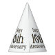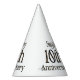 Estos gorras fiestas presentan las palabras "Feliz 10 aniversario" en una letra impresa única con un contorno negro de letras doradas. Todos los gorras de papel tienen una cuerda elástica adjunta impresa en colores vivos completos hechos en Estados Unidos tiene un mínimo de 12 pedidos.