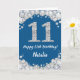 Feliz 11º cumpleaños tarjeta Purpurina azul y plat