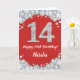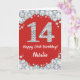 Feliz 14º cumpleaños, tarjeta de Purpurina roja y plateada con nombre personalizado. Para una mayor personalización, haga clic en el botón "Personalizar" y utilice nuestra herramienta de diseño para modificar esta plantilla.