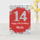 Feliz 14º cumpleaños Tarjeta Purpurina roja y plat