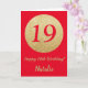 Feliz 19 cumpleaños, tarjeta Purpurina roja y dora