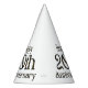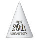 Estos gorras fiestas presentan las palabras "Feliz 20 aniversario" en un original tipo de letra impresa con letras doradas y contorno negro. Todos los gorras de papel tienen una cuerda elástica adjunta impresa en colores vivos completos hechos en Estados Unidos tiene un mínimo de 12 pedidos.