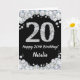 Feliz 20 cumpleaños, tarjeta Purpurina negra y plateada con nombre personalizado. Para una mayor personalización, haga clic en el botón "Personalizar" y utilice nuestra herramienta de diseño para modificar esta plantilla.