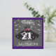Esta invitación es colorida tiene chispas. Hermoso vestido negro en el centro 21 en la parte inferior del vestido. Púrpura y negra