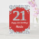Feliz 21er cumpleaños, tarjeta de Purpurina roja y plateada con nombre personalizado. Para una mayor personalización, haga clic en el botón "Personalizar" y utilice nuestra herramienta de diseño para modificar esta plantilla.