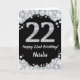 Feliz 22º cumpleaños, tarjeta Purpurina negra y plateada con nombre personalizado. Para una mayor personalización, haga clic en el botón "Personalizar" y utilice nuestra herramienta de diseño para modificar esta plantilla.