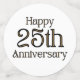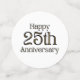 Este artículo presenta las palabras "Feliz 25 aniversario" en un tipo de letra original con letras doradas y contorno negro. Cada envase contiene 60 piezas impresas en papel semi-brillante estándar de 110 lb de peso con impresión de doble cara a color. Excelente cualquier ocasión desde cumpleaños, bodas, aniversarios y cualquier otro momento hito.