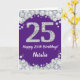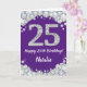 Feliz 25 cumpleaños, tarjeta Purpurina morada y pl