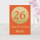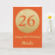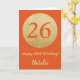 Feliz 26 cumpleaños Naranja y tarjeta Purpurina de