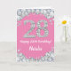 Feliz Tarjeta Purpurina 28º cumpleaños rosa y plateado con nombre personalizado. Para una mayor personalización, haga clic en el botón "Personalizar" y utilice nuestra herramienta de diseño para modificar esta plantilla.