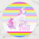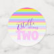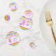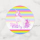 Confeti de mesa de cumpleaños, con una pintada de acuarela de unicornio tierno y coloridas rayas arcoiris. Personaliza con tu propio nombre de chicas de cumpleaños, dice actualmente Estelle cumple dos años. Dibujo único, arte de pintura acuarela y diseño gráfico por Sarah Trett www.sarahtrett.com para www.mylittleeden.com