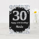 Feliz 30 cumpleaños, tarjeta Purpurina negra y plateada con nombre personalizado. Para una mayor personalización, haga clic en el botón "Personalizar" y utilice nuestra herramienta de diseño para modificar esta plantilla.